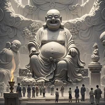 不仅如此,布袋和尚还具有预测天气的神奇能力。据说,他穿高齿木屐时必定是晴天;而穿草履急行时,必定会下雨。商贩们发现,布袋和尚所到之处,往往能带来好运,因此他经常被欢迎光临店铺,以期生意兴隆。